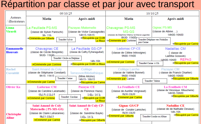 Le samedi, le salon aura lieu de 10h à 13h (inauguration à 11h) et de 14h à 18h donc à la salle des fêtes de Ladornac. Les élèves pourront revenir avec leurs parents rencontrer et participer aux dédicaces d’Emmanuelle Houssais, Rachel Corenblit, Christophe Alline, Olivier Ka et Liuna Virardi, venue d’Italie. Jessica Mazelle, enseignante, se joindra également aux dédicaces. Le salon reçoit le soutien de la Communauté de communes du terrassonnais, du Département de la Dordogne, des communes concernées et du Fonds pour le développement de la vie associative.