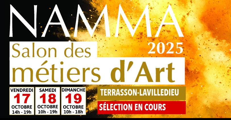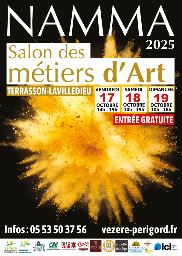 Le 5e Namma a lieu du vendredi 17 octobre 2025 à 14h au dimanche 19 octobre à 18h à Terrasson-Lavilledieu. Ce salon des métiers d’art accueille une cinquantaine d’exposants sur deux salles, à la Vitrine du Périgord et à la salle des fêtes. Le prix du Jury et le prix du Public seront remis samedi à 18h30. L’inauguration aura lieu vendredi à 13h30. Entrée libre. L’évènement est organisé par l’Office de tourisme Vézère Périgord noir et la communauté de communes du Terrassonnais Haut Périgord noir. Ewanews Live Facebook et YouTube retransmettra la manifestation en direct cette année.