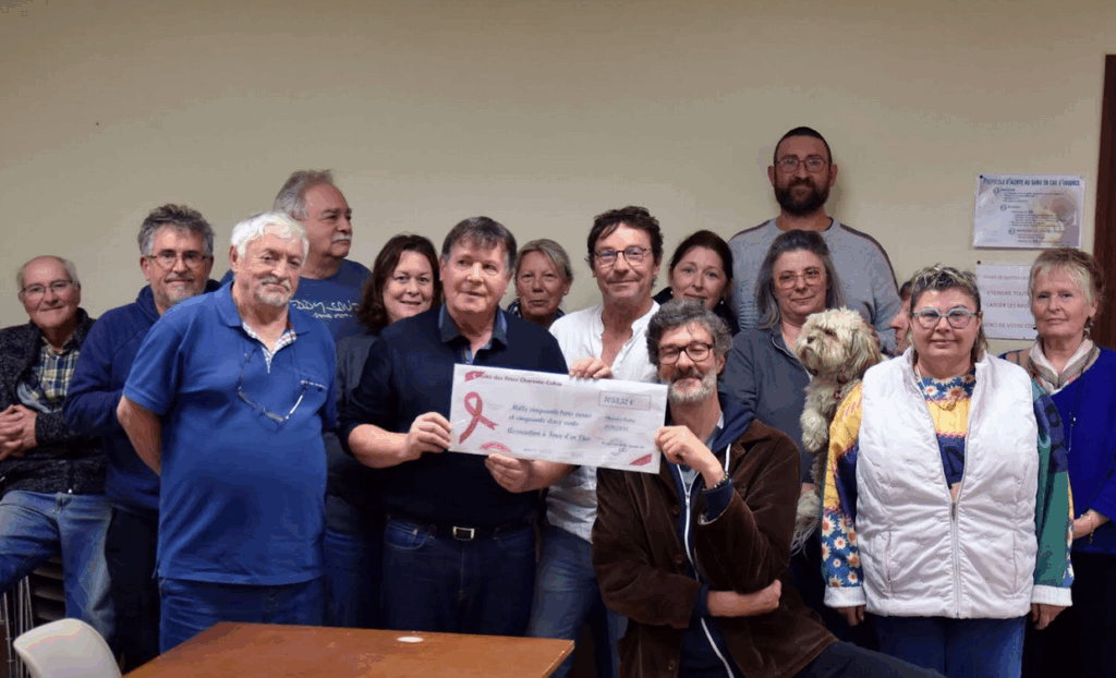 Grâce à la mobilisation de tous, la totalité de la recette (1053,52) a été reversée, le 29 octobre, à l’association « À Force d’Envies ». Cette structure œuvre à organiser des séjours réparateurs post-cancer du sein, permettant aux femmes concernées de se reconstruire après la maladie. Le comité des fêtes tient à remercier chaleureusement l’ensemble des bénévoles qui, par leur disponibilité et leur engagement, ont rendu possible la réussite de cette initiative. Un grand merci également à tous les participants, dont la générosité permettra à d’autres femmes de bénéficier d’un séjour d’une semaine proposé par l’association. Une belle action de solidarité qui illustre, une fois encore, l’esprit d’entraide et de cohésion qui anime la commune de Cherveix-Cubas.