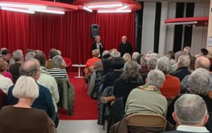 Pour la soirée du 24 janvier avec Daniel Chavaroche, conteur du festival Le Lébérou, bien connu en Périgord Noir, près d’une centaine de personnes se sont laissées prendre par l’irrésistible voix du conteur faisant revivre « Lou Païs », le terroir de son enfance, entre Grande Beune et petite Beune, aux environs de Sarlat et de Commarque. Emaillées de chants occitans, et de paroles en langue d’Oc, ces histoires donnent chair à ce terroir périgourdin unique à travers des personnages aussi différents et uniques que Marius, le garçon d’auberge à tout faire, loué à huit ans par le Bichon et l’extravagante Bichonne ; Kien, « l’annamite déporté au travail forcé du marais pendant la dernière guerre et devenu héros de la Résistance » ; ou Lia, la vieille femme venue chercher des roseaux et du vime pour fabriquer ses paniers et qui conte aux gendarmes qui a tué le jeune garçon trouvé mort sous Commarque, près du ruisseau….