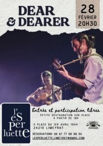 Sur l’agenda cette semaine : une soirée irlandaise samedi à Ladornac ; un repas dansant à Fossemagne ; une soirée Résistance samedi 28 février à 20h15 au Ciné Roc avec l’ANACR ; le spectacle Dear & Dearer à l’Esperluette à Limeyrat ; les Voyageurs de Mots à Sergeac avec une pièce de Durringer ; rencontre amicale de tarot dimanche à 14h pour la bonne cause ; rugby derby dimanche à Terrasson…