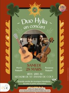 Sur l’agenda cette semaine : le concert de Gianni Bee à la médiathèque de Terrasson (folk acoustique guitare percussions) vendredi 27 mars à 18h30 ; le spectacle de cirque au gymnase du Lardin ce vendredi à 21h avec ICET ; le concert de printemps à Ajat de l’Ensemble vocal de Terrasson samedi 28 mars à 20h ; le Duo Hylia, avec les sœurs Rabatti, concert de musique traditionnelle irlandaise au Séchoir de Saint-Amand de Coly samedi 28 mars à 20h ; La station Champbaudet avec Pacte Tourtoirac samedi 28 mars à 18h ; journée de rugby dimanche 29 mars au stade André Beaudry à Terrasson …
