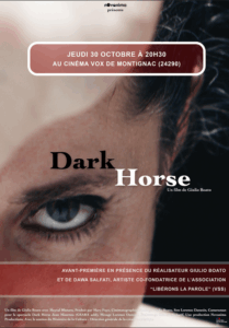 Au programme des deux salles de cinéma… Muganga sera projeté au Ciné Roc le jeudi 13 novembre à 20h30 ; avant-première du film documentaire Dark Horse de Giulio Boato au cinéma Vox de Montignac le jeudi 30 octobre à 20.30 et débat avec Dawa Salfati, artiste co-fondatrice de l’association “Libérons la parole” …