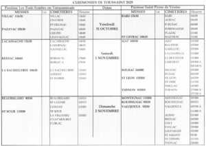 Messes de la Toussaint 2025 en terrassonnais, à Montignac…