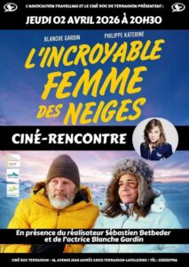 En ce mois de mars 2026 au Ciné Roc de Terrasson, l’association Travelling propose, après l’assemblée générale du 23 mars et la projection de Semer et récolter du réalisateur Éric Le Roch, une soirée exceptionnelle en présence du réalisateur Sébastien Betbeder et de l’actrice Blanche Gardin qui viennent présenter le film « L’incroyable femme des neiges » …