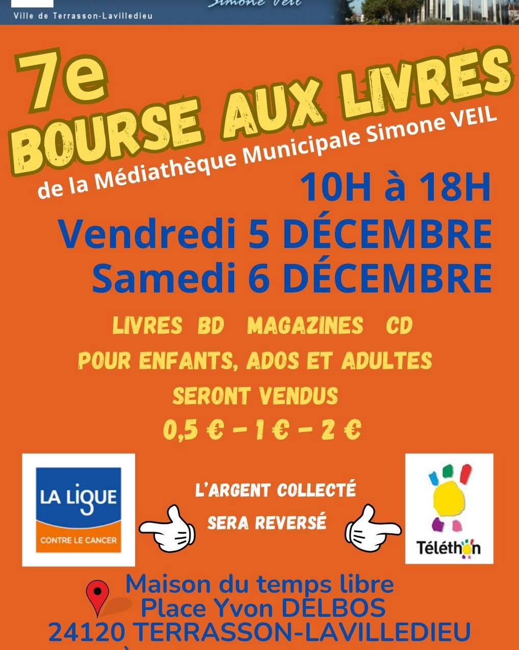 À la médiathèque de Terrasson au profit de la Ligue contre le cancer et du Téléthon.