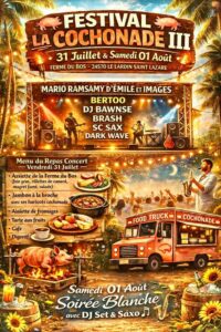 L’Amicale Laïque de Peyrignac et diverses associations de la commune ont organisé une grande soirée dans la cour du château de la Chapoulie avec spectacle théâtral des Compagnons d’Ulysse, buffet campagnard et films vidéo, deux tournés par les élèves de l’école et un autre, une fiction, avec les habitants de la commune : « Starland » ! …