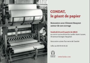 Les salariés des papeteries de Condat ont rencontré ce lundi 8 décembre un éventuel repreneur, le groupe Finesta. Le syndicat CGT était très satisfait que le directeur de ce groupe, intéressé par la reprise du site industriel du Lardin, soit venu se présenter lui-même auprès des salariés. Le directeur a présenté son groupe et la volonté de continuer en misant sur la glassine et la ligne 8, tout en recrutant une équipe technico-commerciale digne de ce nom, et un responsable spécialisé dans le monde papetier…